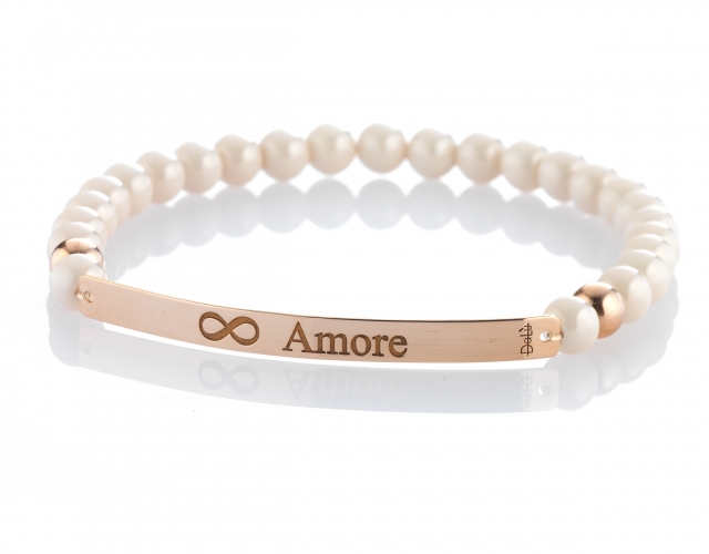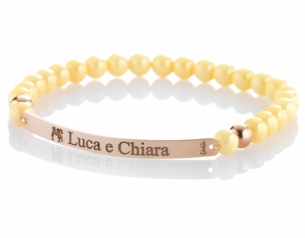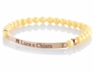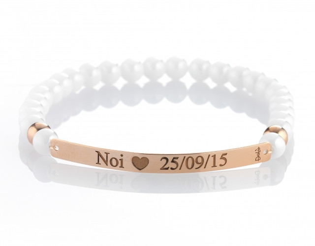 Bracciale DaLù a molla in ceramica colorata e targhetta oro 18kt personalizzabile con nome o piccola frase. L'incisione è a laser, si può richiedere d'incidere anche un simbolo (come da foto) oppure solo il nome, una piccola frase o una data. Le sfere in ceramica si possono richiedere in 7 colori differenti (bianco, nero, blu, avorio, giallo, lilla e grigio) così come la piastra centrale e le 2 sfere laterali in oro 18kt si possono richiedere nelle tre colorazioni del metallo (oro giallo, rosa o bianco)... il tutto è da comunicare nel campo "Richieste? Personalizzazioni?" del carrello d'acquisto, insieme all'incisione. Accattivante design ed armonico connubio di elementi preziosi si fondono in intrecci di oro e madreperla, dando vita a gioielli di grande tendenza ma capaci di trasmettere il senso della tradizionale preziosità di un gioiello. L’esuberanza cromatica enfatizza le linee dei gioielli DALÙ, creando una collezione di forte personalità. Gioiello Made in Italy accompagnato da garanzia e confezione regalo originale Dalù!