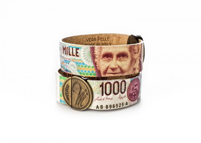 Bracciale Millelire Maria Montessori in pelle e chiusura metallo magnetica taglia S