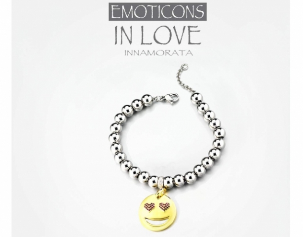 Bracciale Dimmi Jewels Emoticons "In Love" in acciaio e zirconi. Come ti vorrei? Te lo dico con un'Emoticon! Perché quello che s'indossa... può dire tanto! Gioiello Made in Italy completo di confezione regalo della Dimmi Milano.