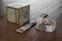 Bracciale Millelire Giuseppe Verdi in vera pelle e chiusura metallo magnetica. Da i creatori del bracciale Il Centimetro, una bella novità disponibile in 3 differenti taglie, S - M - L. Il bracciale è realizzato in cuoio conciato al vegetale, un processo basato sull’utilizzo di tannini naturali provenienti dagli alberi. La chiusura è nickel free, realizzata in lega metallica e rifinita in ottone spazzolato. Curata nei minimi particolari con incisioni nella facciata superiore e unita da un sistema magnetico. Tutto il lavoro viene svolto a mano senza l’ausilio di macchinari industriali… un bracciale 100% Made in Italy per portare con noi, ogni giorno, un pezzettino di storia italiana, ma che sia elegante, unico e facile da indossare.
