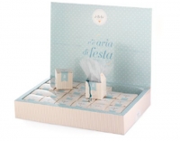 Set bomboniere da 24 scatoline con dadini in argento 925 bimbo, corredati di cordino e 1 confezione da 1 kg di confetti azzurri (distribuiti in gruppi di 5 confetti per ogni scatolino), con mandorla ricoperta di cioccolato al latte e zucchero. E' possibile richiedere anche la personalizzazione GRATUITA di ogni singolo dadino con l'incisione dell'iniziale del nome, da comunicare nel campo note del carrello. Le Bebé ha pensato anche al battesimo del tuo piccolo, con questo meraviglioso kit di bomboniere simpatiche ed originali. Finalmente una bomboniera che sarà apprezzata, indossata e desiderata! Il kit verrà presentato così come da foto presente qui a lato.