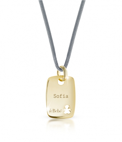Ciondolo Le Bebè per i Papà linea "i Classici" piastrina in oro giallo 9kt con bimba, personalizzabile con l'incisione del nome, realizzata su richiesta gratuitamente.