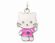 Ciondolo Hello Kitty smalatato bianco con maglietta fucsia in argento 925