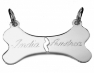 Ciondolo Osso da Cane spezzato divisibile in argento 925 rodiato. Puoi personalizzare il ciondolo incidendo il nome tuo e del tuo cane o un numero di telefono nel malaugurato caso dovesse perdersi. L'incisione va indicata direttamente nel campo note del carrello d'acquisto. Gioiello Made in Italy completo di confezione regalo.