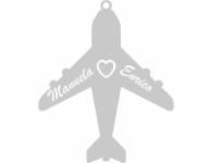 Ciondolo a forma di aereo in argento 925 realizzato a mano su disegno del cliente con incisi i nomi Manuela ed Enrico e cuore centrale. Spessore 0.80 cm, altezza 3-4 cm. Completo di confezione e certificato di garanzia.