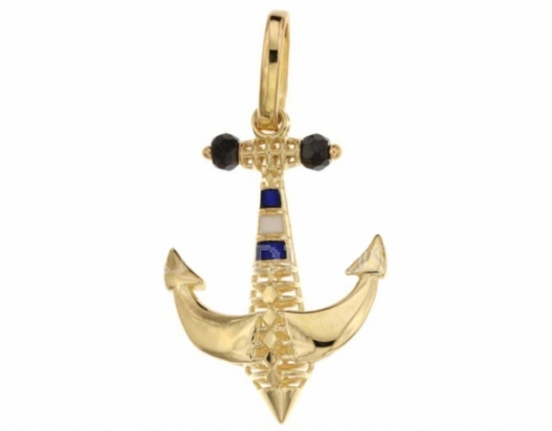 Ciondolo Ancora in oro giallo 18kt e smalto