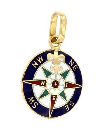 Ciondolo Rosa dei Venti smaltata microfusa in oro giallo 18kt