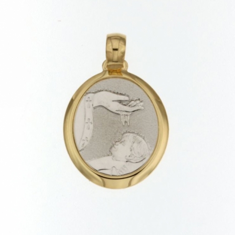 Medaglia ovale con Fonte Battesimale in oro giallo e bianco 18kt