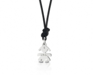 Ciondolo Le Bebè Femminuccia in oro bianco 9kt con cordoncino in cuoio cerato nero.