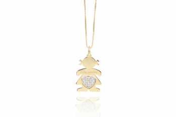 Ciondolo My Love Femminuccia, con cuore centrale di pavè di cubic zirconia.