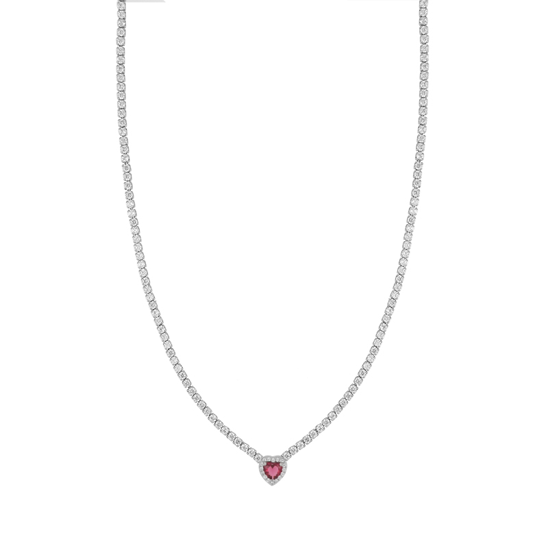 Collana Tennis con Cuore rosso in Argento 925 rodiato e Cubic Zirconia