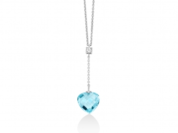 Collana Miluna con Topazio azzurro Naturale taglio Cuore da 4.00ct dimensioni 10x10 mm e Topazio bianco Naturale taglio tondo da 0.13ct dimensioni 3 mm di diametro in oro bianco 9kt.
