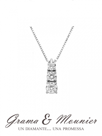 Girocollo Trilogy Grama & Mounier con 3 Diamanti da 0.13ct totali in oro bianco 18kt. I gioielli Grama & Mounier sono tutti realizzati in oro 18kt e Diamanti Naturali taglio brillante colore G e purezza selezionata. Il girocollo Trilogy Grama & Mounier è disponibile entro 3 giorni lavorativi d'acquisto, ed è corredato da astuccio, shopper e certificato di garanzia Grama & Mounier.