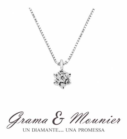 Girocollo fantasia Grama & Mounier con 7 Diamanti da 0.25ct totali in oro bianco 18kt. I gioielli Grama & Mounier sono tutti realizzati in oro 18kt e Diamanti Naturali taglio brillante colore G e purezza selezionata. Il girocollo fantasia Grama & Mounier è disponibile entro 3 giorni lavorativi d'acquisto, ed è corredato da astuccio, shopper e certificato di garanzia Grama & Mounier.