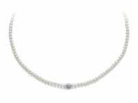 La collana è composta da una serie di perle con diametro 4-4,5 mm e da una sfera diamantata in oro bianco 18kt.