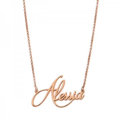 Collana My Charm in argento 925% giallo rosa o bianco con nome in corsivo personalizzabile.