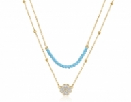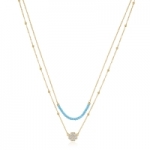 Collana S'Agapò by BrosWay collezione AURORA a doppio filo in pvd oro giallo con pendente a forma di Quadrifoglio, sfere in turchese e cristalli bianchi. Quando le stelle svaniscono e la notte lascia il posto al giorno, il cielo si illumina di magiche sfumature. Creazioni discrete eppure brillanti come la luce del sole che sta per sorgere. Una linea giovane, raffinata e low cost. S'Agapò, la nuova nata in casa Bros Manifatture, entra nel mercato della gioielleria fashion con tutte le caratteristiche vincenti del marchio Brosway. Gioiello completo di garanzia e confezione regalo S'Agapò.