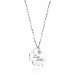 Collana S'Agapò by BrosWay collezione BE MY ALWAYS, in acciaio 316L con quadrifoglio, cristallo bianco e incisione “Stay wild".