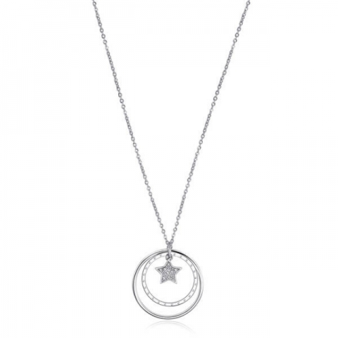 Collana S'Agapò by BrosWay collezione LUCY in acciaio 316L con pendente a forma di Stella e cerchi concentrici con cristalli bianchi.