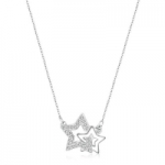 Collana S'Agapò by BrosWay collezione TWICE in acciaio 316L con pendenti a forma di Stella intrecciati e cristalli bianchi.