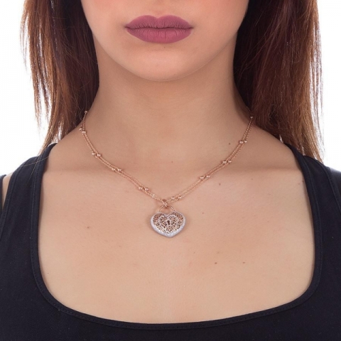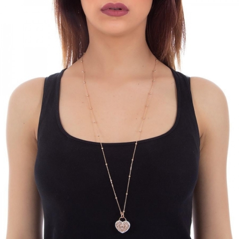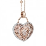 Collana BOCCADAMO Alissa in bronzo rosato con pendente a forma di cuore (larghezza cm 2,5, lunghezza cm 3), realizzato con la tecnica dell'elettrofusione e decoro in glitter silver.