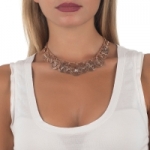 Collana BOCCADAMO corta in bronzo placcato oro rosa con charms concentrici degradè di ispirazione Maya e cristalli Swarovski crystal. Lunghezza cm 40, estendibile fino a cm 45,5.