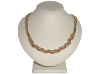 Un'esclusiva collana firmata "MATTIOLI" con una lavorazione unica. Completamente in oro giallo 18kt, la collana è realizzata "a rete"... Pregiati fili d'oro uniti fra loro proprio come le classiche calze da donna. La parte bassa della collana è "arricciata" e attraversata da una piccola catenina in oro bianco in modo tale da rendere più consistente la lavorazione. Ai lati ci sono due spirali in oro giallo; da ognuna partono 2 fili d'oro giallo a rete. La chiusura è addirittura regolabile grazie a delle maglie ad anelletto, con la possibilità quindi di scegliere a che altezza regolarla. Inoltre vicino la chiusura sono applicate due palline di oro diamantate che vanno a chiudere la "rete" e vicino vi è applicata una piccola targhettina con inciso il nome MATTIOLI. Un articolo davvero unico di indiscutibile eleganza e classe. Gioiello Made in Italy con confezione regalo inclusa.