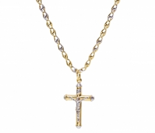 Collana uomo con croce Cristo crocifisso tubolare in oro giallo e bianco 18kt
