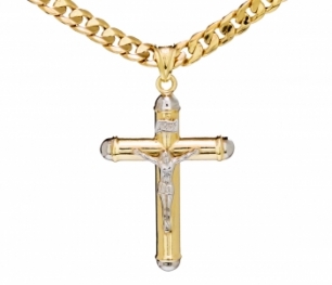 Il Crocifisso è dalle dimensioni importanti, scatolato e completamente lucido in oro giallo e bianco 18kt.
