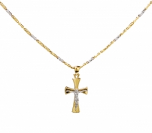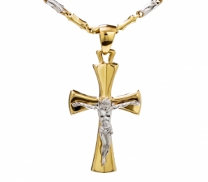 Collana uomo con croce Cristo crocifisso in oro giallo e bianco 18kt