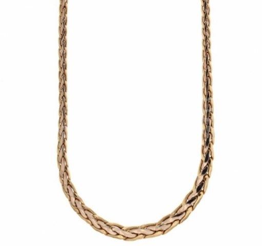 Collana girocollo modello Cobra piatto a scalare in oro giallo e bianco 18kt.