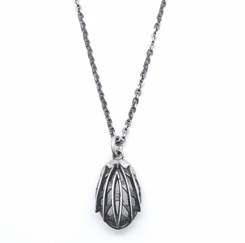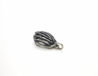 Particolare e rifinito pendente a forma di casco da ciclista, realizzato in argento 925% brunito e completo di collana lunga 50 cm con possibilità di allungarla fino a 55 cm.