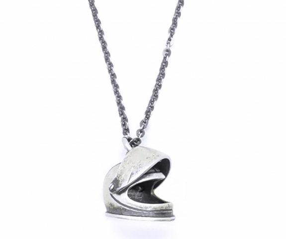 Collana con Casco integrale da Moto in argento 925% brunito.