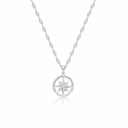 Il ciondolo rosa dei venti è in oro bianco a lastra piena lucida con incisa la rosa dei venti ed i nomi dei 4 venti: tramontana, levante, mezzogiorno e ponente.