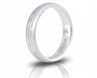 Fedina UNOAERRE modello Ibisco AF288 ricavata da un unico blocco di argento rodiato 925% lucido centralmente e satinato ai lati.