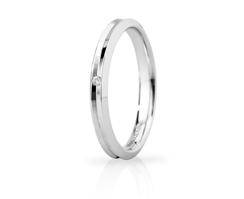 La fede è scanalata lungo la parte centrale della sua circonferenza e presenta un diamante puro taglio brillante da 0,01ct.