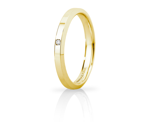 Fede Nuziale Unoaerre modello Hydra Slim in oro giallo 18kt con diamante.