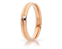 Fede Nuziale Unoaerre modello Lyra in oro rosa 18kt con brillante.