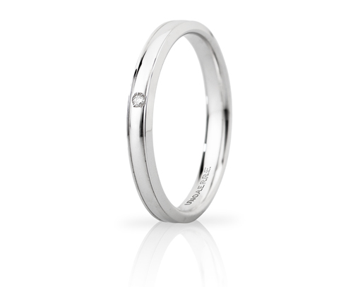 Fede Nuziale Unoaerre modello Orion Slim in oro bianco 18kt con diamante