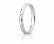 Fede Nuziale Unoaerre modello Orion Slim in oro bianco 18kt con diamante.