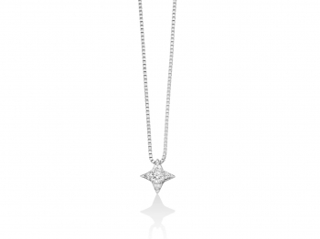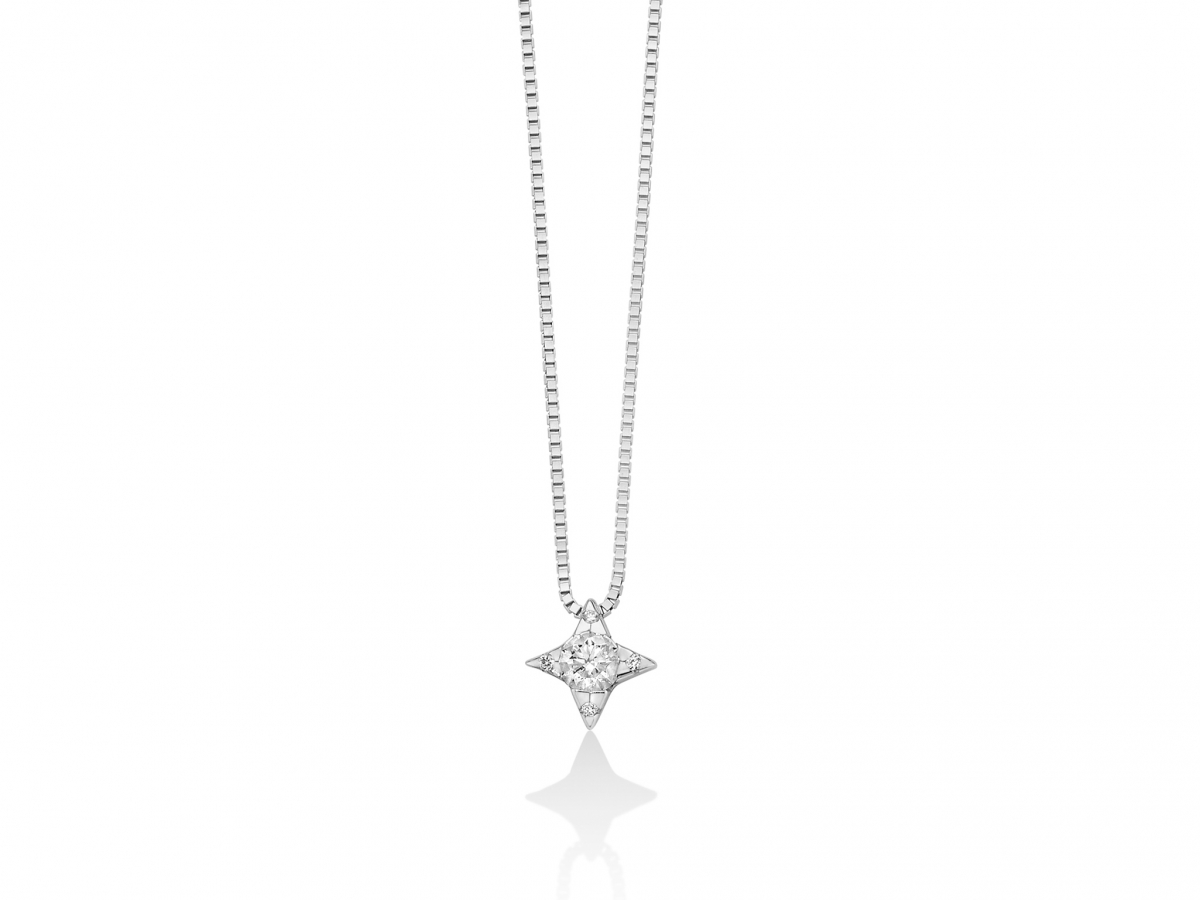 Catenina girocollo Miluna punto luce a Stella con Diamante Naturale centrale da 0.11ct più ulteriori 4 Diamanti Naturali a contorno da 0.016ct totali, il tutto montato su oro bianco 18kt.
