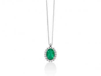 Giricollo Miluna Kate con Smeraldo Naturale da 0.72ct e 18 Diamanti Naturali a contorno da 0.135ct in oro bianco 18kt.