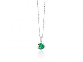 Giricollo Miluna con Smeraldo Naturale da 0.32ct e 3 Diamanti Naturali a contorno da 0.015ct in oro bianco 18kt.
