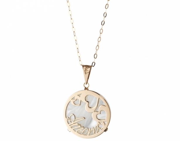 Catenina con ciondolo Amore in oro giallo o rosa 18kt e madreperla.