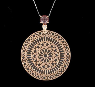 Girocollo con Rosone FOGI by Gianni Carità in oro bianco 18kt con diamante 0.03ct e granato