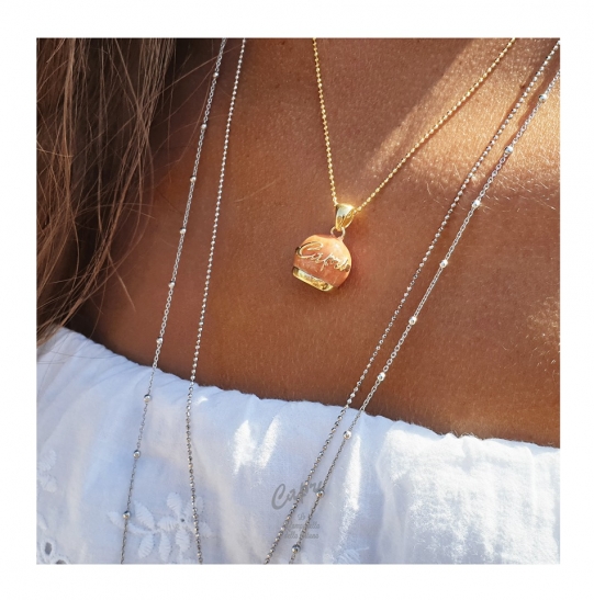 Catenina e ciondolo Capri la Campanella della Fortuna in argento 925% placcata oro 18kt rivestita da vero Corallo.