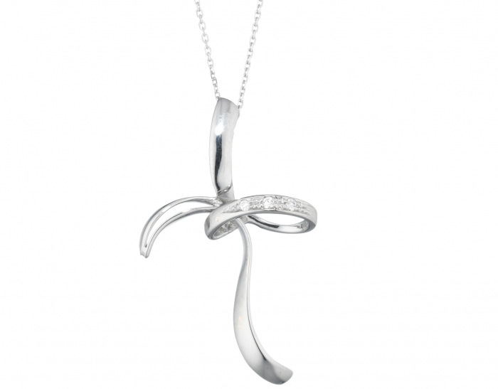 Catenina girocollo Diamonds Luxury con Croce e Diamanti 0.03ct in oro bianco 18kt