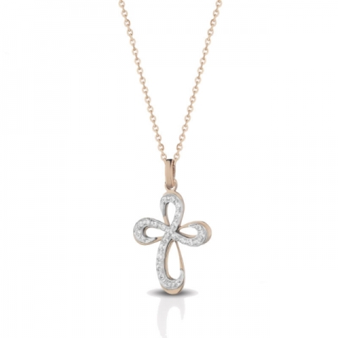 Catenina con Croce Melissa Jewels in oro rosa 18kt e pavè di diamanti incastonati nell'oro bianco 18kt. Si prega di selezionare la preferenza del colore della catenina (oro bianco oppure oro rosa) nel menù a tendina, sopra al pulsante "Aggiungi al carrello". NON E' POSSIBILE PERSONALIZZARE IL GIOIELLO. Gioiello Made in Italy accompagnato da garanzia e confezione regalo originale Melissa Jewels!
