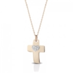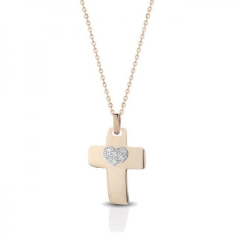Catenina con Croce Melissa Jewels in oro rosa 18kt e pavè di diamanti incastonati nel cuore in oro bianco 18kt. Si prega di selezionare la preferenza del colore della catenina (oro bianco oppure oro rosa) nel menù a tendina, sopra al pulsante "Aggiungi al carrello". NON E' POSSIBILE PERSONALIZZARE IL GIOIELLO. Gioiello Made in Italy accompagnato da garanzia e confezione regalo originale Melissa Jewels!