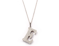 Girocollo con ciondolo Lettera E in oro bianco 18kt con pavè di brillanti